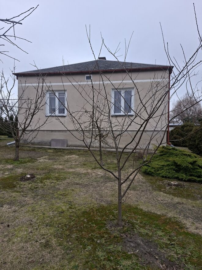 Oferta dodana za pomocą Multiportalu BeBrokerW ofercie dom parterowy jednorodzinny, składający się z ganku, korytarza z którego wchodzi się do następujących pomieszczeń: spiżarni, łazienki z oknem, jasnej kuchni, salonu oraz sypialni. Dom położony jest na regularnej działce w kształcie kwadratu o pow. 36 arów, zagospodarowanej z licznymi nasadzeniami, z posadowionymi na niej budynkami gospodarczymi .Dom w stanie do zamieszkania i adaptowania pod indywidualne potrzeby, w spokojnej okolicy. Obecnie jako ogrzewanie służy wstawiona do korytarza tzw. koza na opalanie drewnem. Zapraszam do prezentacji. KONTAKT POD NUMER TEL. 609 - pokaż numer telefonu - .